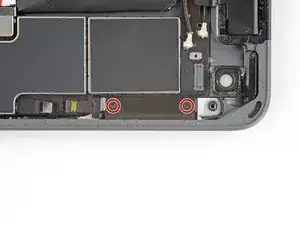 Используйте крестовую отвёртку, чтобы выкрутить два винта длиной 2,3 мм, крепящие кронштейн кнопок громкости к задней крышке.