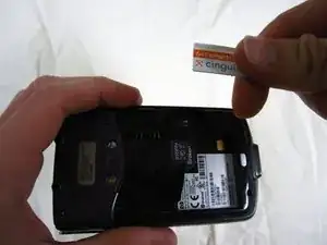 Удалите аккумулятор, потянув вверх за черную петлю.