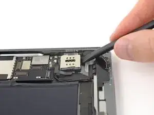 Используйте плоский конец лопатки, чтобы аккуратно поддеть SIM‑плату от задней крышки iPad.