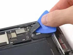 Просуньте лопатку вокруг верхнего левого угла iPad, чтобы отделить клей.