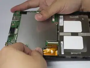 Подденьте левую сторону корпуса пластиковой отвёрткой. Задняя панель планшета теперь должна полностью отделиться от передней.