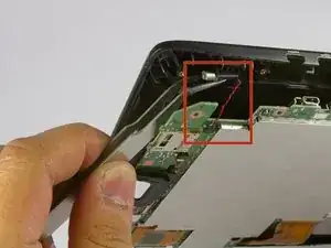 Вибромотор всё ещё соединён с системной платой тонким проводом, поэтому осторожность необходима, чтобы не оторвать провод.