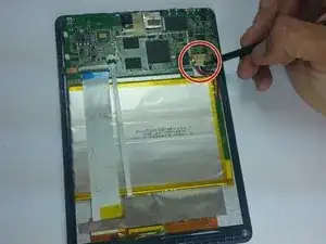Используйте лопатку, чтобы аккуратно отсоединить разъем батареи от материнской платы.