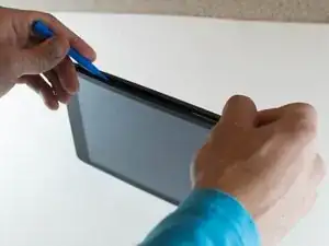 Используйте пластиковый инструмент для вскрытия, чтобы снять заднюю крышку. Осторожно вставьте инструмент между передним стеклом и задней крышкой.