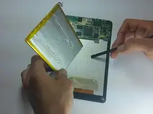 Используя плоский конец лопатки, аккуратно подденьте лопатку под батарею и приподнимите её, чтобы снять с устройства.