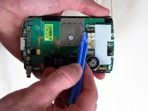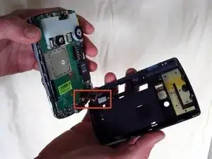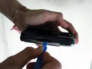 Используйте пластиковую инструмент для вскрытия, чтобы разъединить половины корпуса по нижнему краю телефона.