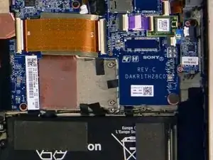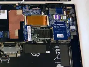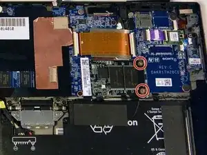 Найдите SSD на правой стороне устройства, над батареей и под чипом Wi-Fi.