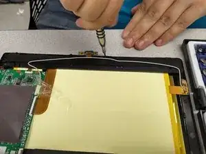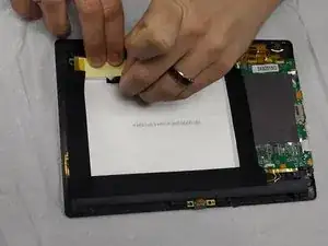 Начните с того, что переверните планшет экраном вниз. Осторожно используйте пластиковый инструменты для открытия, чтобы приподнять крышку. Начните с угла, противоположного кнопке гибернации.