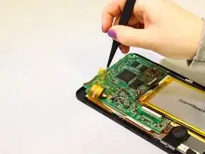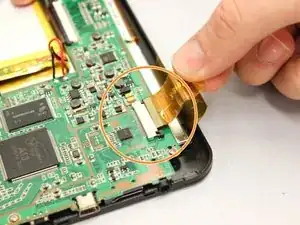 Материнская плата и аккумулятор теперь отсоединены от всех лент, подключённых к устройству.