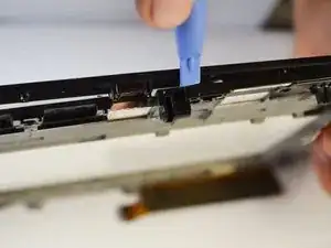 Возьмите небольшой пластиковый инструмент для вскрытия и отделите фронтальное стекло от рамки экрана.