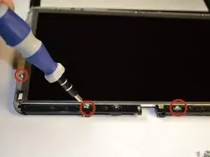 Отверткой Torx T5 открутите 12 винтов 4,1 мм по краю экрана.