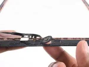 Аккуратно отлепите шлейф кнопки «Домой» от клея, крепящего его к задней части крышки.