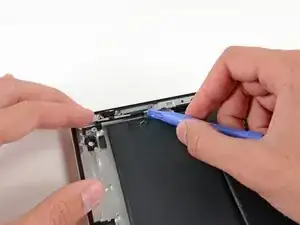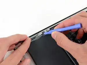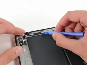 Засуньте край пластикового инструмента для вскрытия под датчик сна/пробуждения, аккуратно, чтобы не повредить хрупкий кабель.