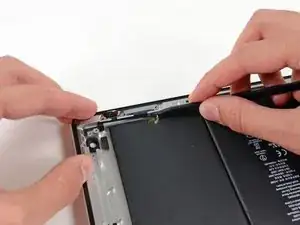 Продолжайте продвигать наконечник лопатки вверх по iPad, отделяя клей.