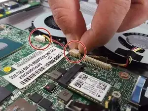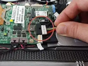 Пальцами аккуратно и медленно отсоедините показанный провод от материнской платы.