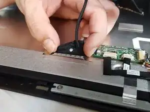 Перед окончательным отделением экрана от задней крышки аккуратно отсоедините два провода, подключённых к обеим сторонам устройства. Это позволит полностью отделить заднюю крышку от экрана.