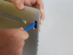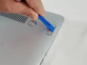С помощью пластикового инструмента для поддевания аккуратно подденьте пластиковую деталь, показанную на изображении, пока она полностью не отделится от корпуса.