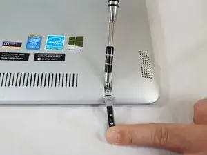 Отверткой Phillips #1 снимите винт, расположенный непосредственно под резиновой заглушкой.