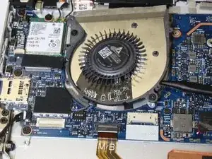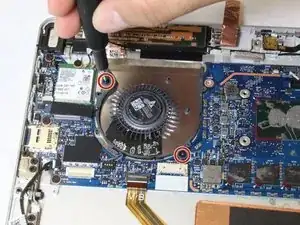 Отверткой Philips #00 снимите два последних винта длиной 3 мм, фиксирующие вентилятор.