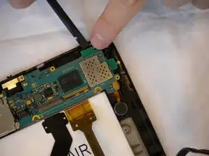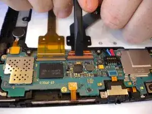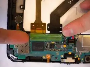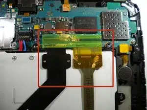 С помощью пинцета отогните зелёную ленту, расположенную поверх двух гибких шлейфов.