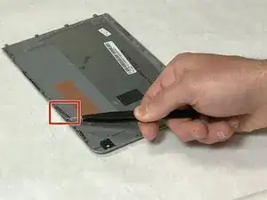 Осторожно вставьте металлическую лопатку в заднюю панель устройства.