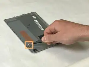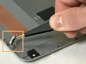 С помощью пинцета извлеките кнопку громкости, расположенную ближе к верхней части устройства, рядом с вырезом для задней камеры.