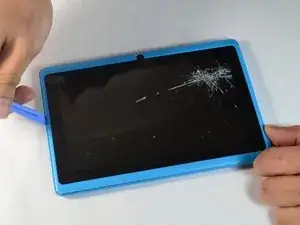 Вставьте пластиковый инструмент для открывания между экраном и корпусом.