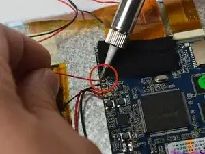 Используя паяльник, распаяйте оба провода динамика (один красный провод и один чёрный провод).