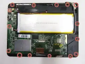 Поднимите печатную плату от экрана снизу и отложите её в сторону.