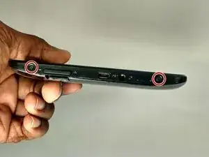 Используйте биту Phillips 00, чтобы выкрутить два винта 3 мм внизу планшета.