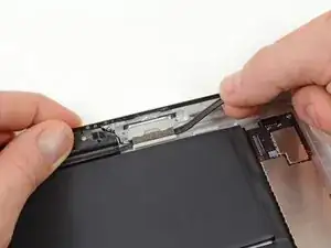 Вам нужно освободить клей, фиксирующий антенну к передней панели, не повредив тонкие детали, которыми антенна крепится к нижней части iPad. Тщательно выполняйте следующие шаги.
