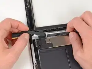 Проведите монтажной лопаткой вдоль верхнего края iPad, слегка вытаскивая её, чтобы обойти кронштейн фронтальной камеры.
