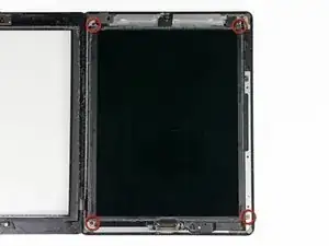 Удалите четыре винта Phillips #00 длиной 2 мм, крепящие ЖК-экран к алюминиевой рамке.