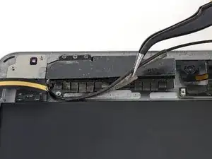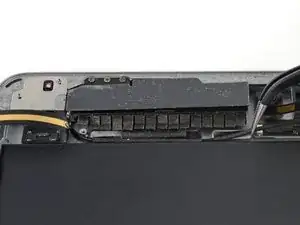 Отклейте два оставшихся куска заземляющей ленты, прикрепляющие левую антенну к заднему корпусу, как в предыдущих шагах.