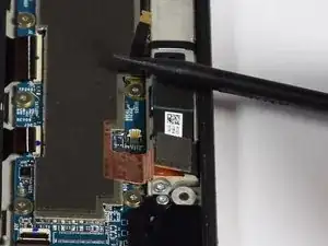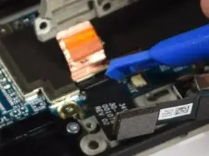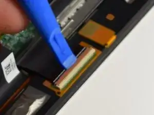 Используя пластиковый инструмент, поднимите заслонку разъема кабеля.