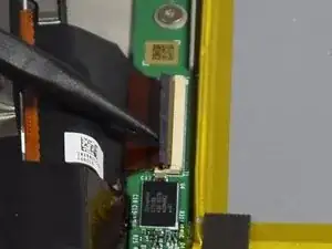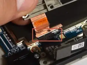 Вытяните узкий гибкий кабель вверх и в сторону, чтобы отсоединить его от материнской платы.