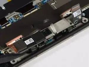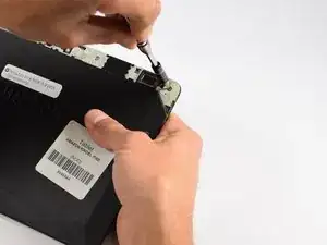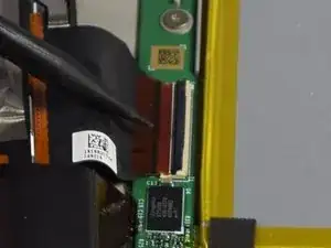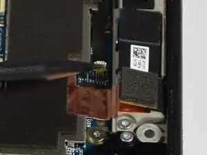 Теперь нам нужно открутить два гибких кабеля, прикрепленных к сборке экрана и корпусу устройства.
