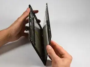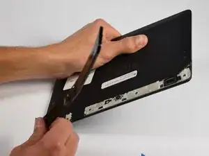 Начните снимать экран с того места, где был удален черный пластиковый молдинг, и обведите инструмент вокруг сторон устройства. Вы услышите небольшие щелчки, когда защелки по бокам будут освобождаться.