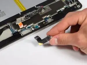Как только гибкий кабель отсоединен, вы можете теперь удалить заднюю камеру из корпуса камеры.