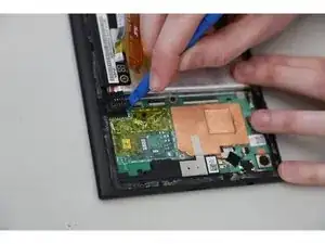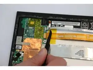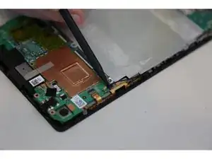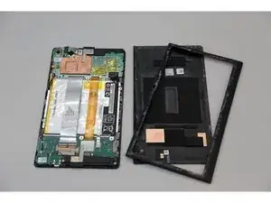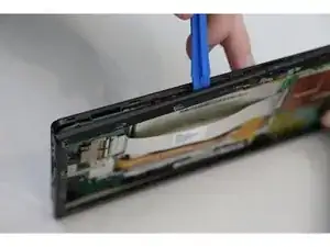 После снятия задней панели используйте пластиковый инструмент, чтобы снять рамку планшета.
