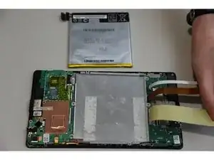 Отсоедините разъёмы ZIF, чтобы освободить кабели данных, фиксирующие аккумулятор. Используйте для этого пинцет.