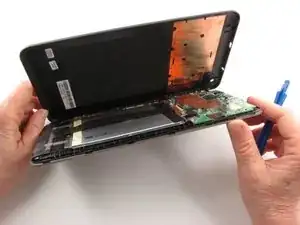 Обведите пластиковым инструментом вокруг устройства, чтобы полностью снять заднюю крышку.