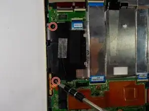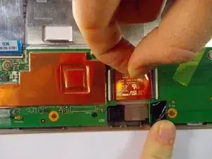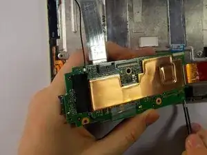Вытяните плоский кабель из нижней стороны материнской платы, затем снимите её.