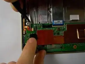 Осторожно отсоедините кабель батареи от платы, захватив провода близко к чёрному разъёму и вытянув его из гнезда.