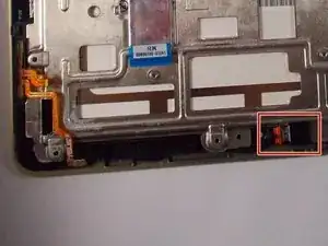 Отсоедините плоский кабель с помощью маленьких пинцетов от кнопок громкости и питания.