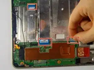 Для сборки устройства прикрепите новую камеру к материнской плате, затем соберите устройство, выполнив эти шаги в обратном порядке.