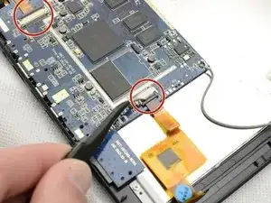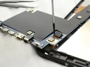 Удалите два винта на боковой стороне планшета, удерживающие заднюю крышку, используя крестовую отвертку iFixit PH00.