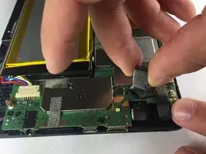 С помощью пластикового инструмента для вскрытия подденьте заднюю крышку планшета.