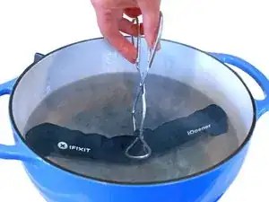 Используйте щипцы, чтобы вынуть нагретый iOpener из горячей воды.