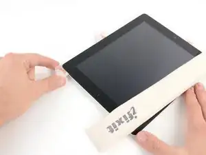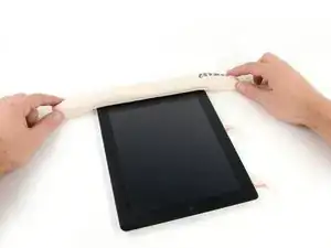 Положите iOpener ровно на правый край iPad, разгладьте его, чтобы обеспечить хороший контакт между поверхностью iPad и iOpener.